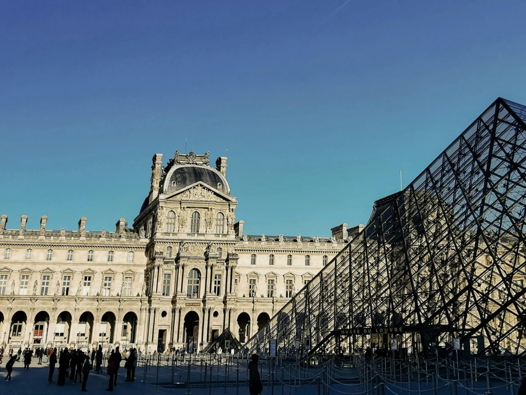 - Arquitetura icônica: Pirâmide de vidro + palácio histórico